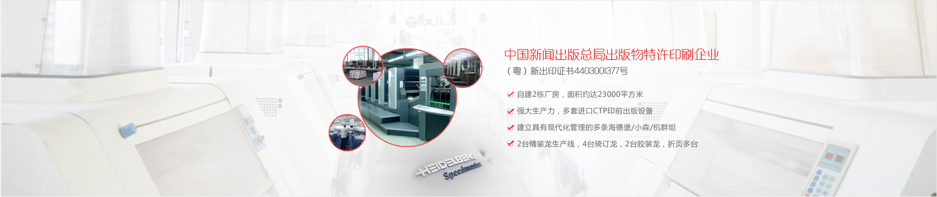 公司實(shí)力雄厚,設(shè)備先進(jìn)。 聚集了許多高等院校的尖端高級印刷專業(yè)人才,擁有國際頂尖的、全球最大的成套印刷設(shè)備— - 德國海德堡-對開四色、五色、雙色、單色、四開四色機(jī)等的主體印刷設(shè)備, 擁有高水準(zhǔn)后道加工系統(tǒng)—— 全電腦控制的斯塔爾折頁機(jī)、 STAHL 自動(dòng)折頁機(jī)、 全自動(dòng)鎖線機(jī)、 全自動(dòng)騎馬訂聯(lián)動(dòng)機(jī)、馬天尼膠裝龍、 程控切紙機(jī)、環(huán)保型過膠機(jī)、啤機(jī)等 精良裝備,整套印前印后設(shè)備。